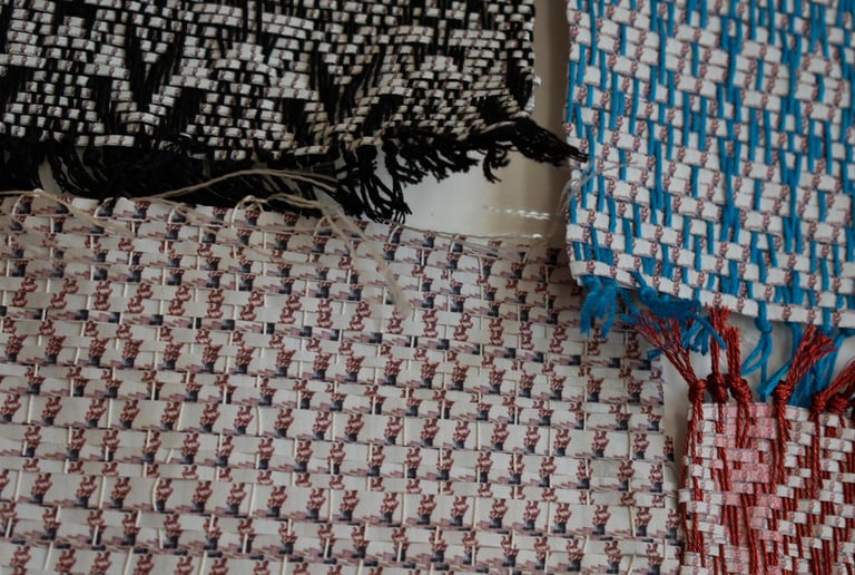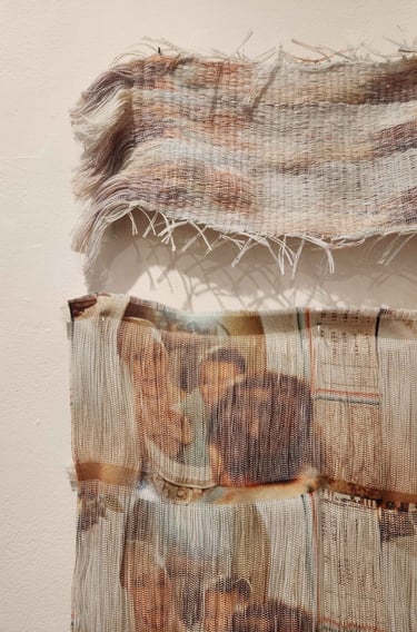 To address my personal connection, I use a printed image of my uncle taken from our family photo album—a photograph captured just a few years before his execution—as material in the work. In this project, I create woven paper and textile pieces using this image. By transforming the photograph into small, repeated pattern lines that function as the weft of rugs, with yarn and string forming the warp, the work references everyday objects such as rugs and tapestries. Despite their artistic and historical significance, these objects also carry an ordinary, domestic presence, which I use as a metaphor for the right to a normal life—a life that was taken from so many. In this way, the piece is composed of thousands of fragments of my uncle’s image, standing in for the countless lives that were cut short.